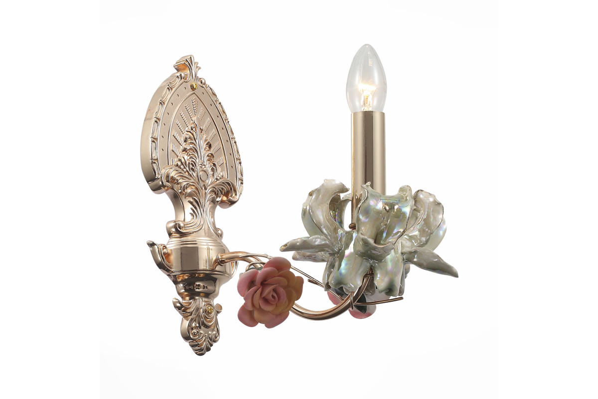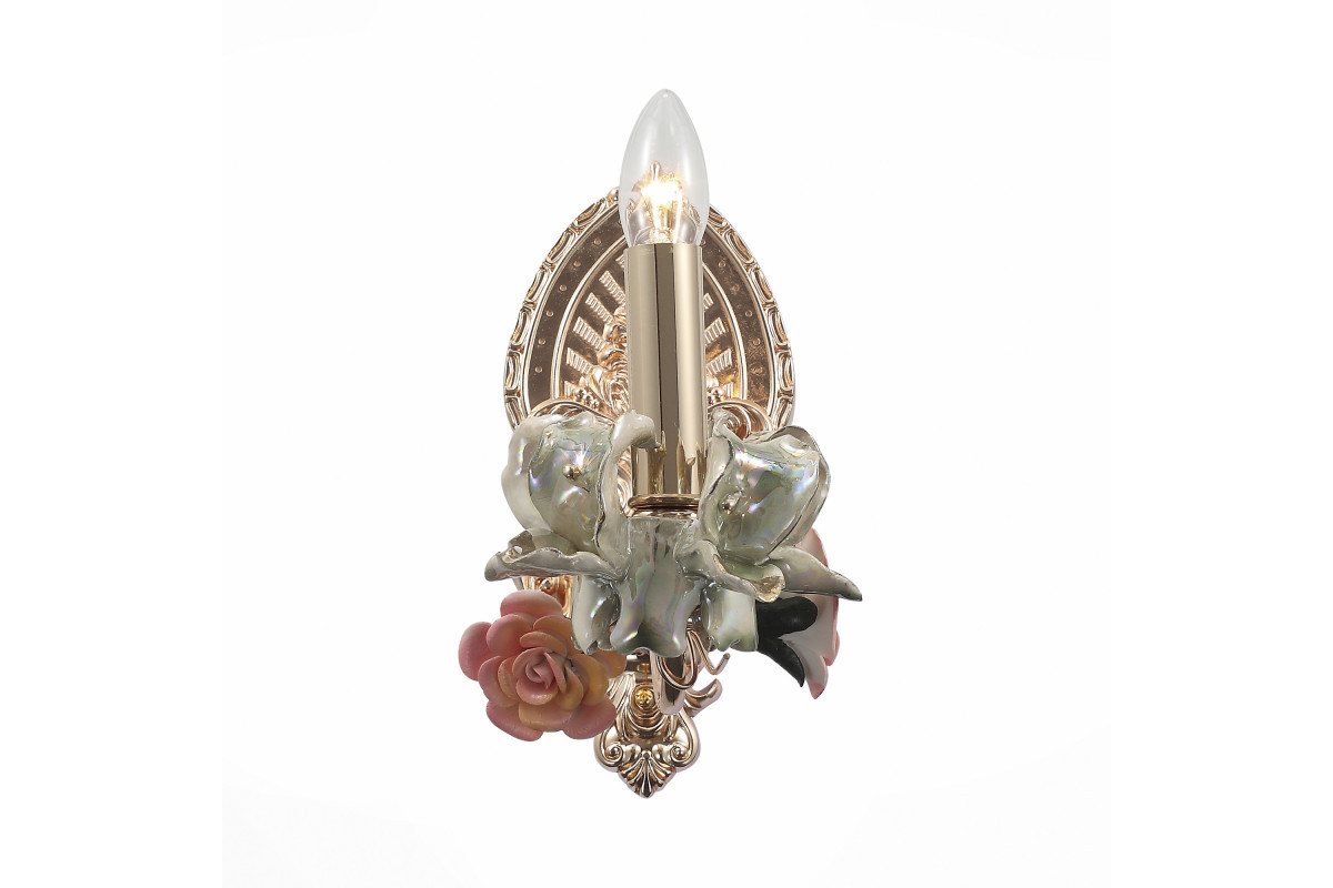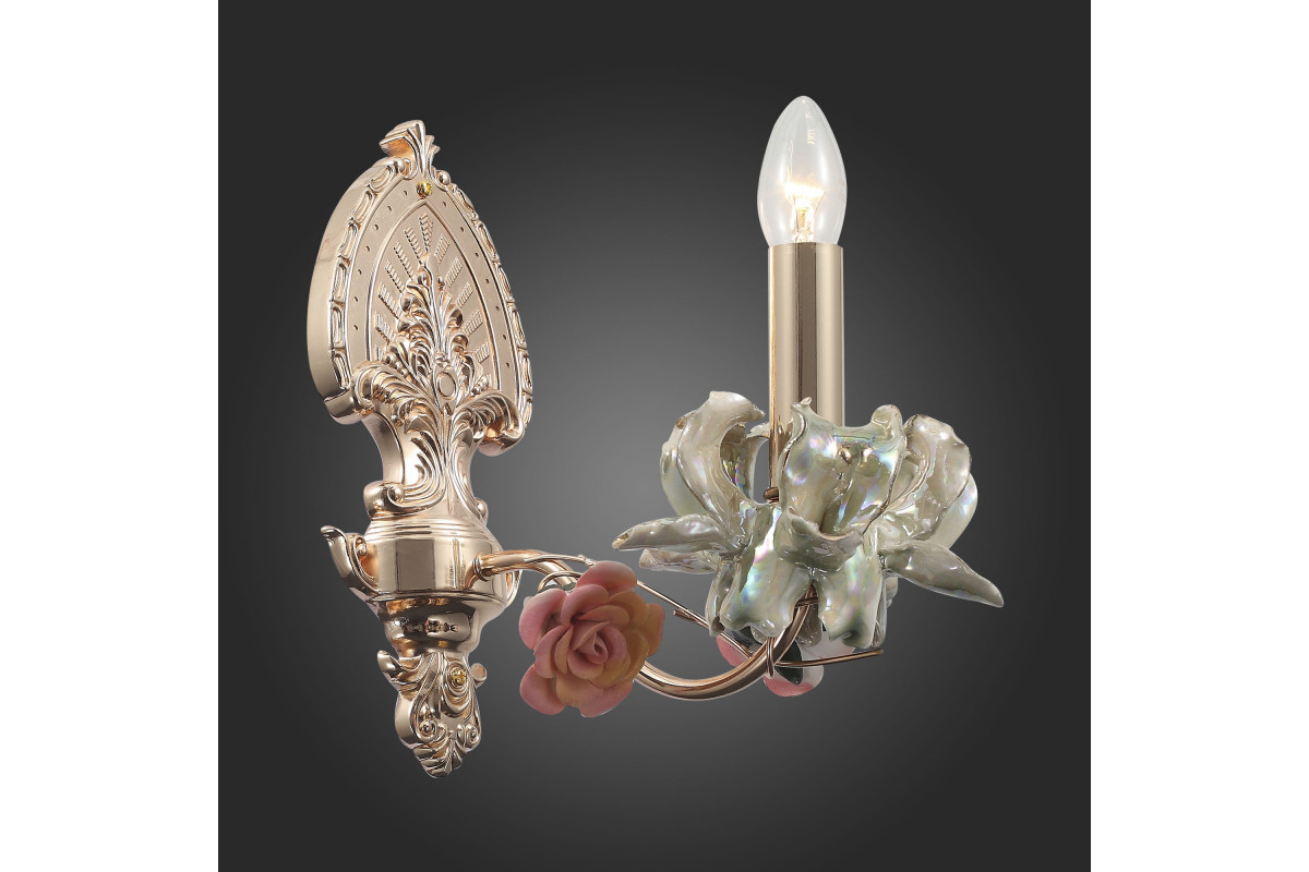 Рассмотрим основные характеристики данного изделия: Назначение помещения: спальня | Место установки: На стену | Форма: овал | форма плафона: без плафона | Стиль: флористика | Площадь освещения: 3 |