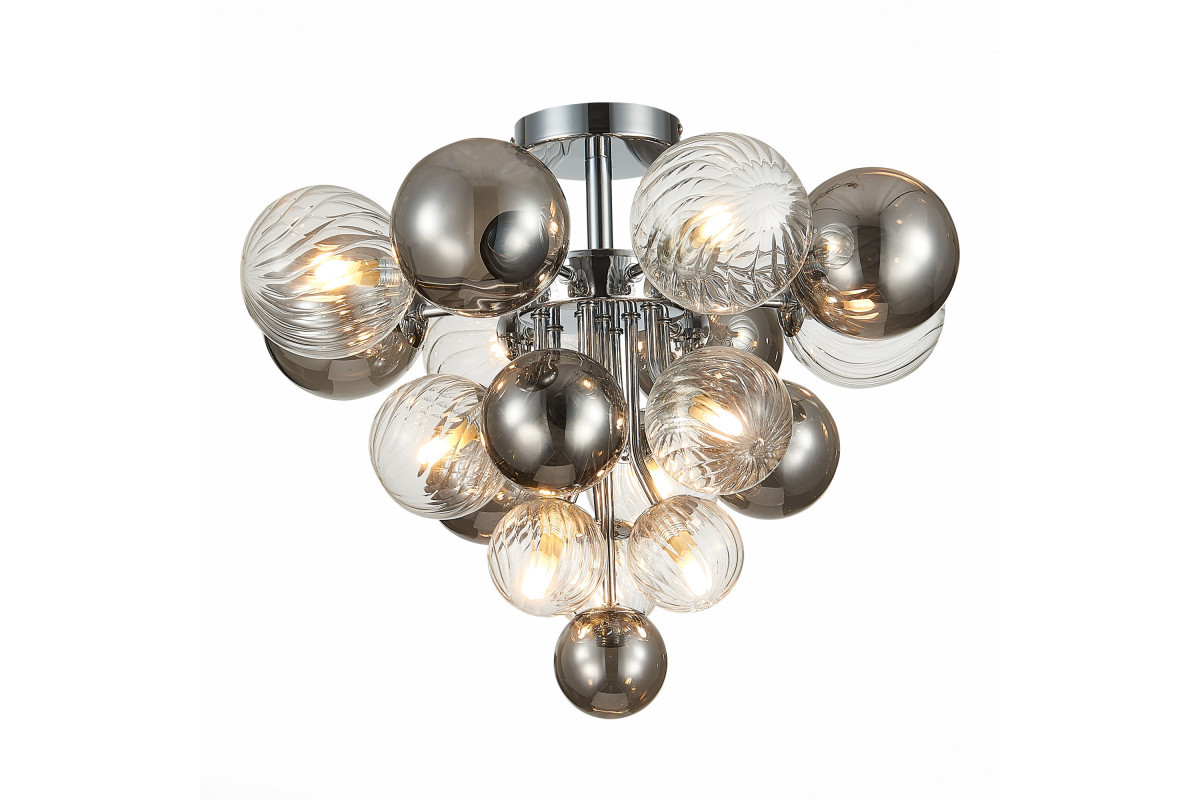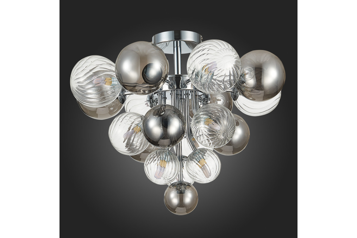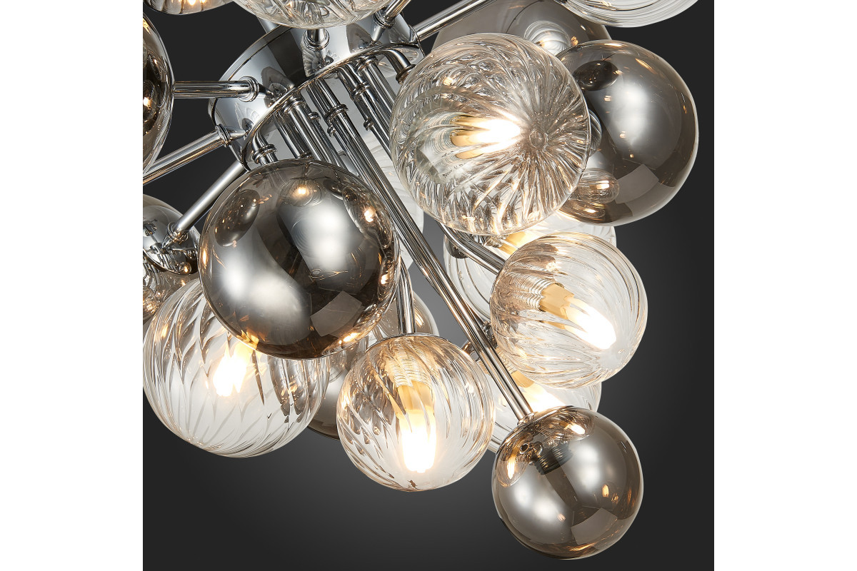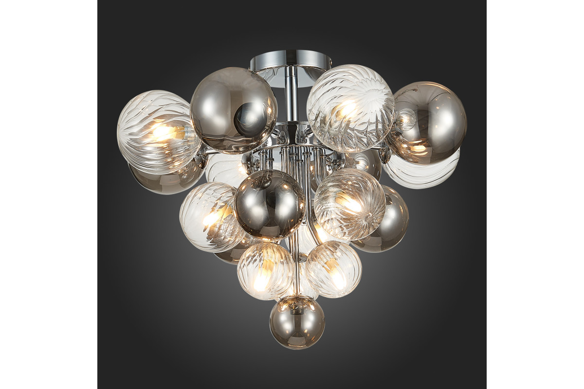 Рассмотрим основные характеристики данного изделия: Назначение помещения: гостиная | Место установки: На потолок | Форма: круг | форма плафона: шар | Стиль: современный | Площадь освещения: 20 |