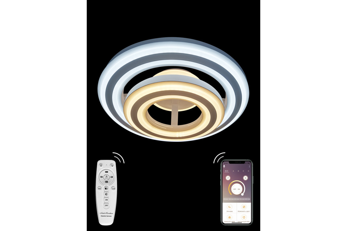 Рассмотрим основные характеристики данного изделия: Назначение помещения: гостиная | Место установки: На потолок | Форма: круг | форма плафона: круглый | Стиль: современный | Площадь освещения: 40 |
