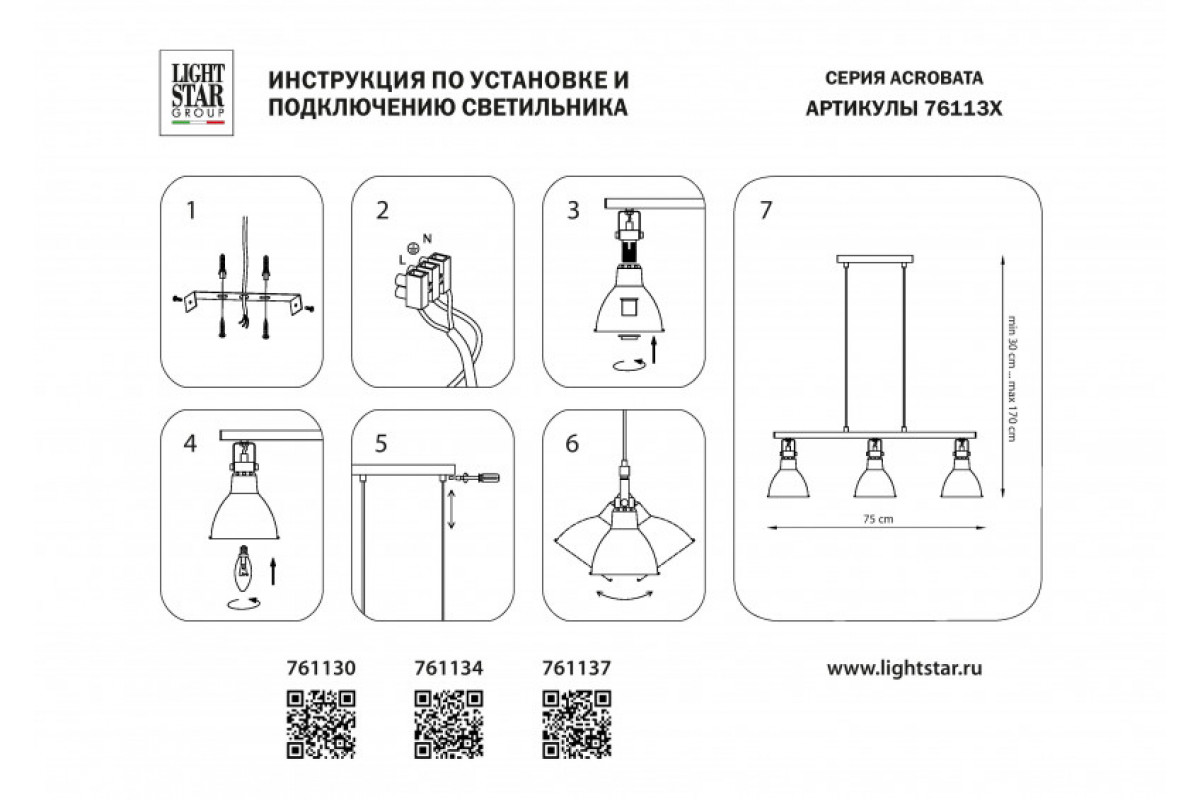 Шикарный шедевр Подвесной светильник Lightstar 761137 от Lightstar (Китай), коллекция: acrobata в разделе Подвесные светильники можно приобрести в нашем магазине Vivid-Light.ru.